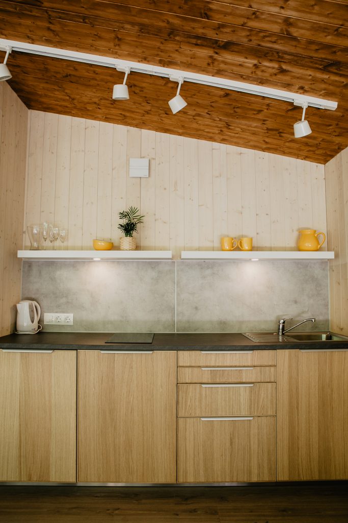 Tai trečiasis, didžiausias mūsų namelis, kuriame galėsite mėgautis net 36 kv. m. apartamentais. Namelyje rasite viską, ko gali prireikti atvykus: virtuvėlę, vonios kambarį, poilsio zoną bei didelę terasą, pakabintą ant miško šlaito. Terasoje galėsite mėgautis karšta ofūro vonia tik dviese, o norintys patirti tai, ko dar niekur neteko matyti, galės išbandyti ant skardžio esantį tinklą! Vakarinio namelio gyventojai kiemelyje neturi EKO baseino, tačiau gali naudotis SPA teritorijoje esančiu baseinu.